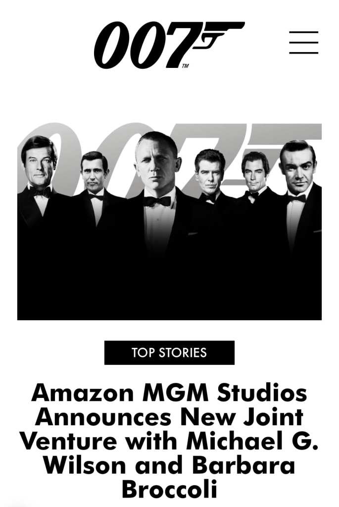 „Amazon MGM Studios, Michael G. Wilson and Barbara Broccoli today announced that they have formed a new joint venture to house the James Bond intellectual property rights, and those parties will remain co-owners of the franchise. Under the terms of the new venture, Amazon MGM Studios will gain creative control of the James Bond franchise following closing of the transaction.